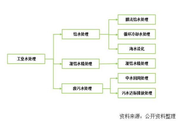 工业水处理主要包括三部分内容:给水处理、凝结水精处理和废污水处理。给水处理包括工业企业生产过程和职工生活过程中,取水,输水,水质处理和配水工程;凝结水精处理和中水回用是污水经过深度处理后回收再利用处理;排水是收集,输送,处理,再生和处置污水雨水和事故水的工程。