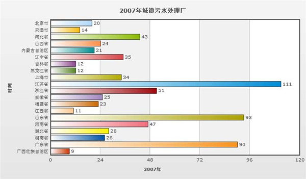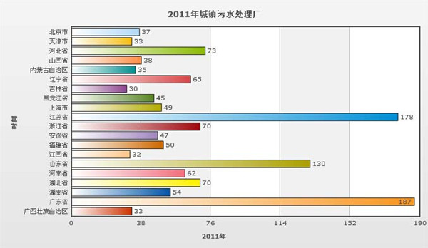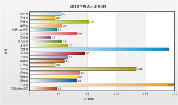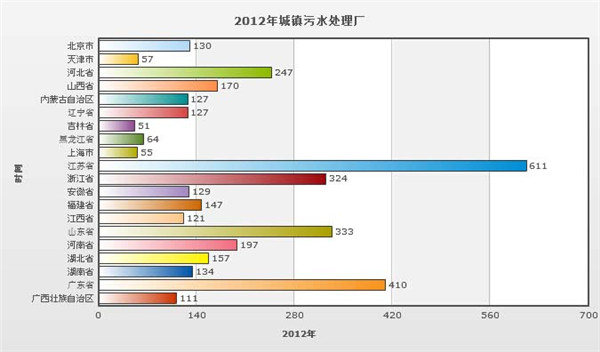 从数据上看,全国城镇污水处理厂数量前三甲分别为:江苏省、广东省、山东省,三省合计占全国总数量的三分之一。下图为部分省市污水处理厂数量图表。