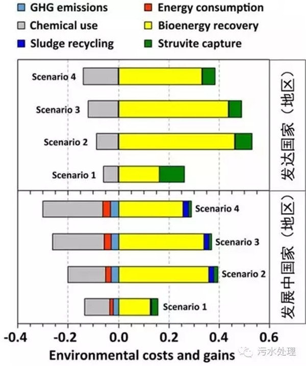 除此之外,研究人员在未来情景分析中指出,全球不同国家地区推动和实施污水处理模式革新所带来的环境可持续潜力存在较大的差异,而发展中国家在借鉴发达国家污水资源化成功案例的同时,可通过减少化学品消耗和促进污水能源回收等策略去发展符合自身发展需要的污水处理新模式。