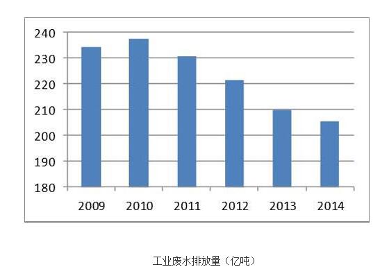 2013年我国水资源总量为2.8万亿立方米,居世界第五位,占世界总量6.5%;我国人均水资源量为2072立方米,排世界第102位,约为世界平均水平(6055立方米)的1/3,被列为世界人均水资源最贫乏的国家之一。据统计,我国2013年劣V类水占比高达15%,进一步加剧了我国水资源严峻的形势。我国2013年废水排放总量为695.4亿吨,其中工业废水209.8亿吨,占30%。化工行业废水排放量为93亿吨,处理量为41亿吨,处理比例仅为44%。