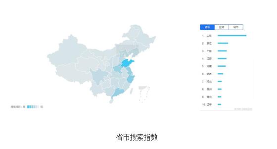 上面两张图是关于搜索人群的年龄和性别属性进行的统计。我们根据数据可以了解到环保设备关注人群以中年男性居多,年龄大多集中在30—39,这类人群几乎可以定位为环保设备主要消费者,因为采购环保设备大多为企业老板或领导者,根据精准的人群画像,环保企业可以对这类人群进行重点攻略。